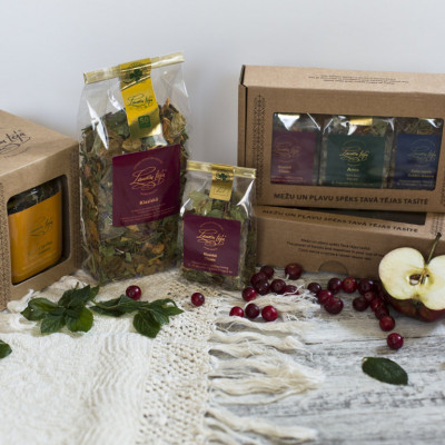 Ekoloģiskas zāļu tējas. Bioloģiskā saimniecība. Produkciju var iegādāties eko-veikalos, Stockmann,...