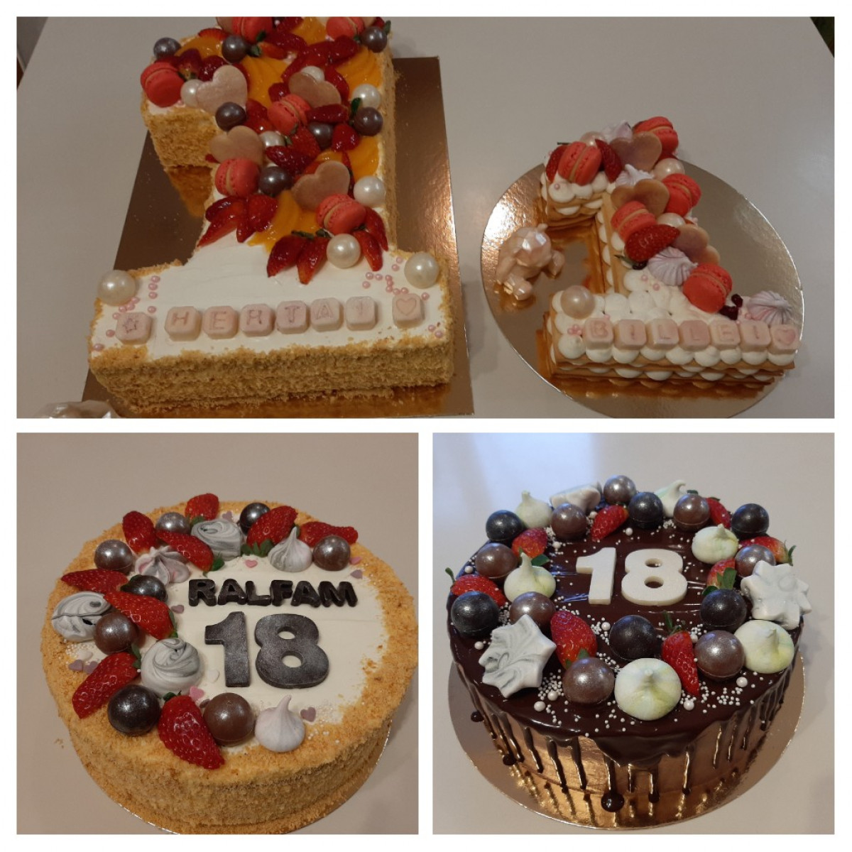 Visvairāk dažādiem svarīgiem dzīves notikumiem tiek ceptas tieši kūkas. Nav īsti tādas vienas populārākās kūkas, bet ir liela iespēja izvēlēties - gatavoju klasiskās lauku kūkas ar vārīto krēmu, daudzi saka - kā bērnībā, medus kūkas, siera krēmu kūkas, biezpiena putukrējuma kūkas, snikerkūkas, kokoskūkas, musa kūkas, ciparkūkas, kā arī dažādus saldumus - greznos pildītos kēksiņus, pavlovas, makarūnus, riekstiņus, piparkūkas un smilšu mīklas cepumus, dažādās dražejas, no kurām neparastākās ir bišu maize šokolādē, jo pati nodarbojos arī ar biškopību. Piedāvāju saldumu izlases, kā arī saldumus dāvanu noformējumā.