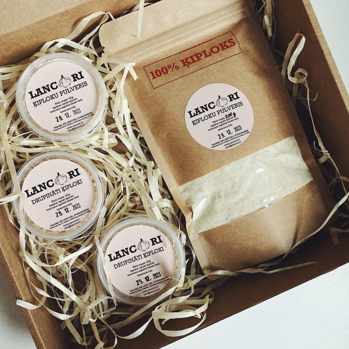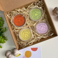Lieliska dāvana svētkos! Latvijā radītas ķiploku garšvielas ar spēcīgu aromātu, stipru-ņipru garšu! 4 garšvielu komplekts. Iesaiņots skaistā kartona dāvanu kastītē. Komplektā ietilpst: 1 gb Jaud