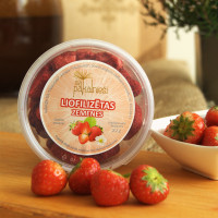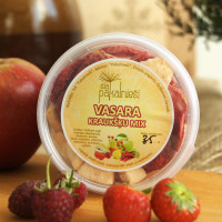 Liofilizēti augļi mainīgos daudzumos (zemenes, avenes, āboli, rabarberi, cidonijas, dzērvenes, bumbieri, upenes) Neto svars: 35gr