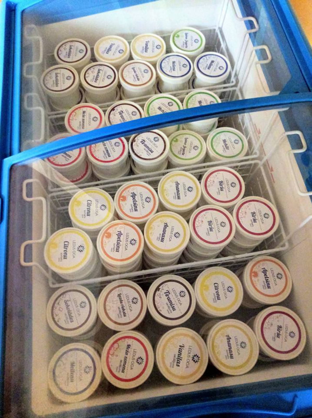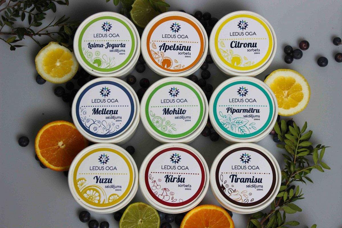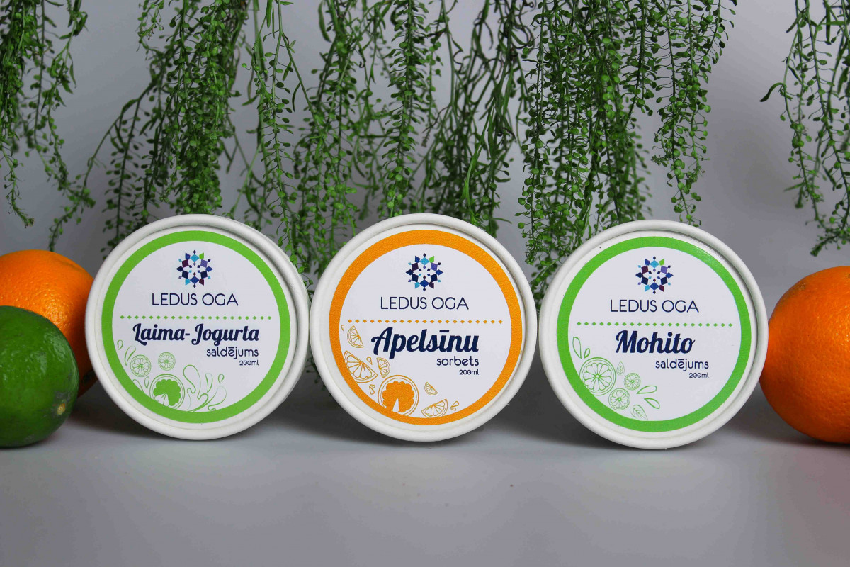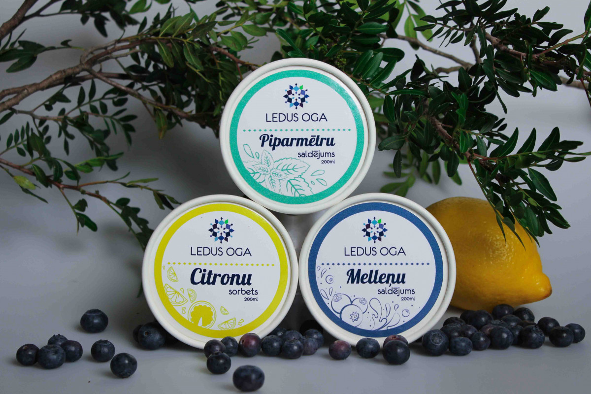 IK LEDUS oga tika dibināta 2016. gada decembrī, to izveidoja Kristīne Ozola, kura tajā brīdī mācījās 12. klasē. Uzņēmums ražo saldējumus no īsta piena, kā arī sorbetus. 2019. gadā saņemts apbalvojums nominācijā Salacgrīvas novada jaunais uzņēmējs. Katrs saldējums ir roku darbs, kas tiek veidots ar lielām rūpēm. Ražošanas vieta atrodas ārpus pilsētas, taču tuvu A1 šosejai, tāpēc ir viegla piekļuve ražotnei. Kā arī atrodas netālu no jūrmalas. LEDUS OGAS saldējumus ir iespējams iegādāties veikaliņā " Radīts Salacgrīvas novadā" , kā arī Ainažos - " SuperAlko Latvia" veikalā un "Coffee & Stuff". Iepriekš vienojoties piegādes notiek Salacgrīvā, Ainažos un šo pilsētu apkārtnē. Norēķini skaidrā naudā, vai ar pārskaitījumu.