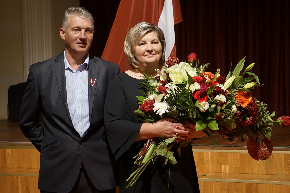 Laima Stepanoviča lepojas ar 2018. gadā saņemto Skrundas novada Pateicības rakstu “Par nesavtīgu atbalstu novada mazaizsargāto iedzīvotāju vajadzību nodrošināšanā.